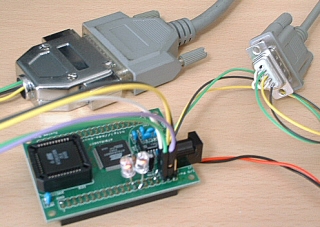 74HC125によるバッファが入ったXILINX互換のケーブルでなくても、プリンタポートと配線を直結して作る「即席のJTAGケーブル」でも動作します。