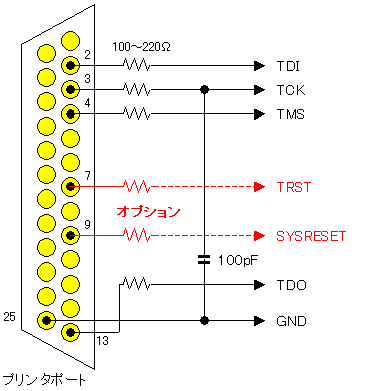 (ただし、ノイズに多少弱くなる上、ご使用のPCによっては、パラレルポートの電圧の振幅がARMの入力電圧の絶対最大定格を若干オーバーすることがあります。)