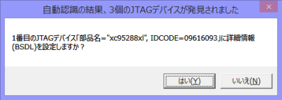 5個のデバイスが認識されたというメッセージが出るので、それぞれのデバイスにBSDLファイルを設定します。