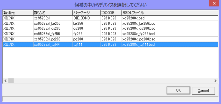 BSDLファイルを選択するダイアログが表示されたら、①XC95288XL_TQ144、②XC3S1500_FG456、③XC3S400_FG456の順に指定します。