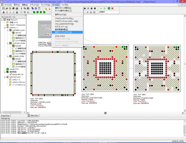 MITOUJTAGのメイン画面に戻ったら、「ツール」メニューの中の「基板ファンクションテスト」を起動します。