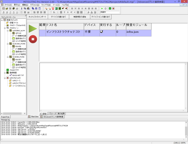 基板ファンクションテスト機能が起動した直後の状態では、インフラストラクチャ・テストのみが登録されています。