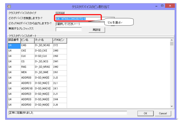 このダイアログでは、部品番号(U?のようなもの)と、JTAGチェーン上のデバイス番号との対応付けを行います。