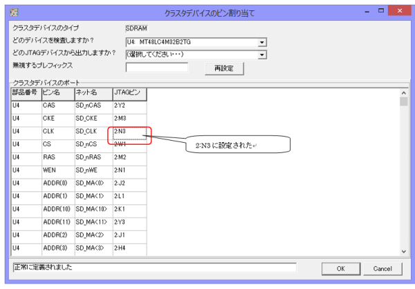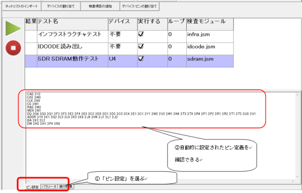 ここでOKを押すと元の画面に戻りますが、ピン設定タブの中に、ピン定義の推測結果が設定されていることがわかります。なお、この内容を手動で書き換えて、ピン定義の割り当てを手動で設定することもできます。