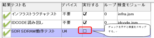 検査をスキップしたい場合は、実行するのチェックボックスをクリックして、チェックを外します。これはどうしても検査に失敗してしまう項目がある場合に、その検査を行わないようにしたい場合に使います。