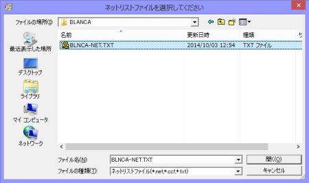 ネットリストを選択するダイアログが開くので、ネットリストファイルを選択します。
