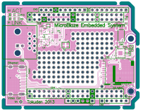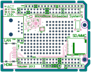 100BASE-TXのLANを搭載し、HDMI出力付とMicroSD/MMC Microコネクタがついています。Arduinoの形状と同じ形状ですが、*duinoとして使うのではなくLinuxを動かすことを最終目標とします。