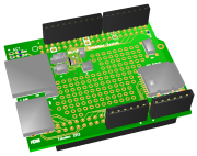 拡張ボードを設計して出図した。Arduinoの形状で、100BASE-TX LANを備えていて、DVI/HDMI出力ができて、マイクロSD/MMCカードとUSB仮想シリアルポートもあるというものです。下の図は設計中のもの。