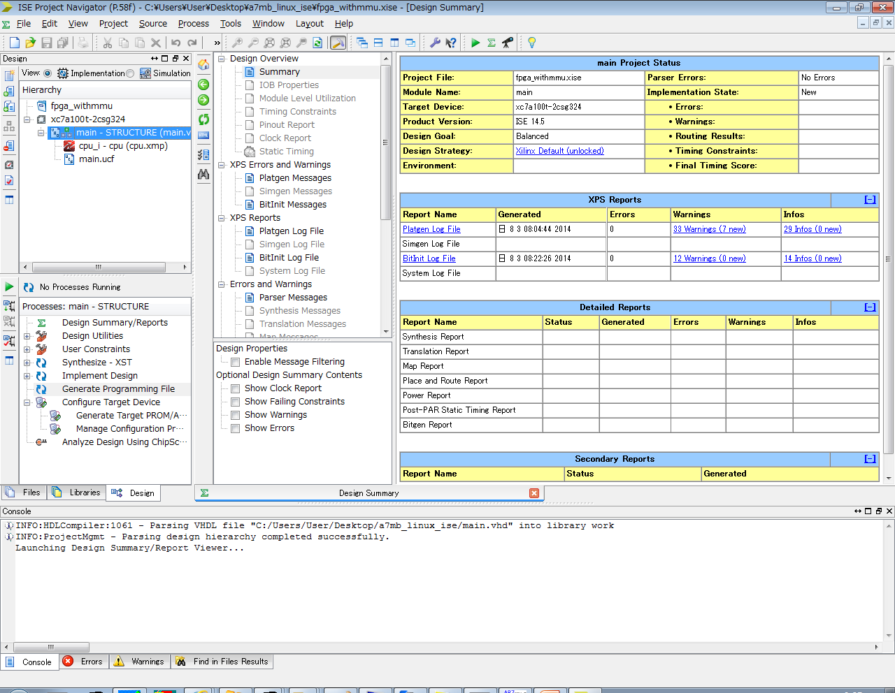 まずは、ISEでこのfpga_withmmu.xiseを開いてください。