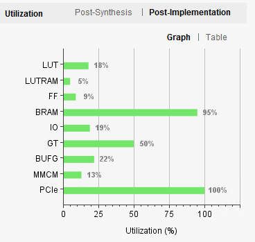 サンプルデザインを論理合成し、XC7K160Tに実装したときのリソース使用量を以下に示します。