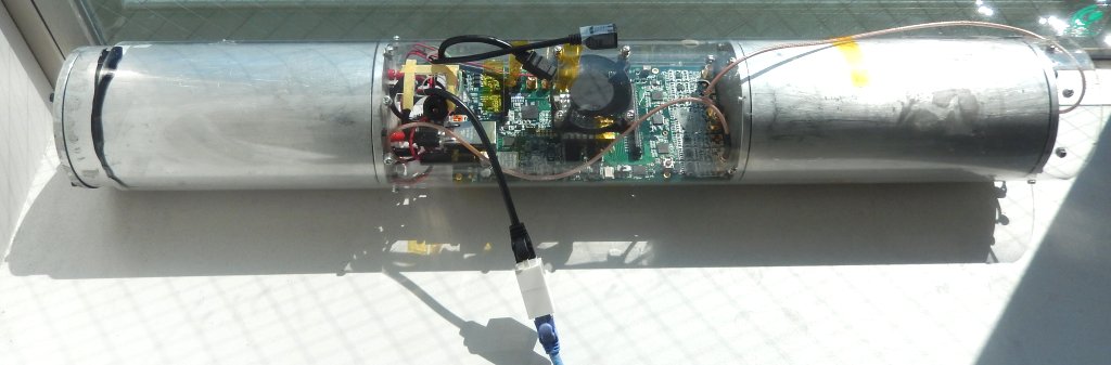 最近のCosmo-Zは、持ち運びに便利なように光電子増倍管とともにアクリルの円柱に入れられて、モバイルバッテリで動き、とてもポータブルなのです。