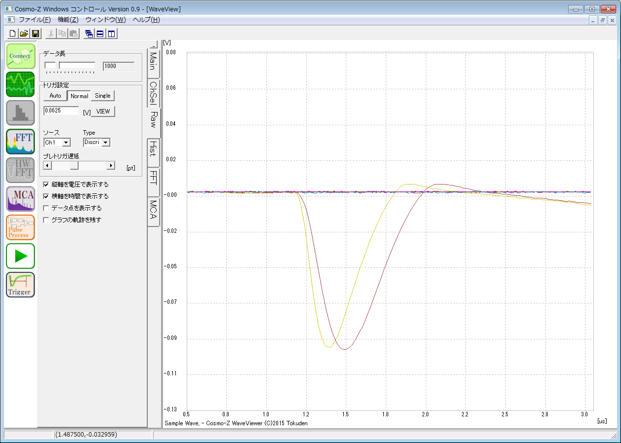 オシロのように波形を見ることもできれば、複数のWindowsを立ち上げて、波形の全体を表示させながら一部を拡大表示したり、放射線のスペクトラムを見るためのMCAも統合されています。