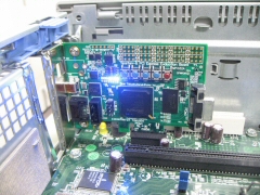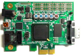 メイン展示物のひとつ、Spartan-6のPCI Expressボードです。PCI Expressをケーブルで引っ張っていたため、これでPCI Expressが動いているようには見えなかったかもしれないと、ちょっと反省してます。