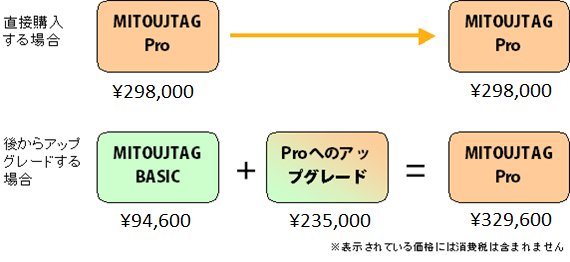 MITOUJTAG BASICをお持ちの方は、いつでもProへのアップグレードが可能です。