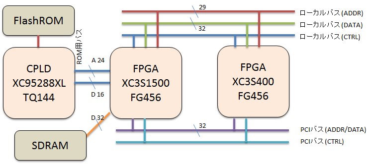 BLANCAは、右上の図のように、2つのFPGAとCPLD間を非常に多くの配線でつないでいるため、このような接続検査の例題として最適だからです。