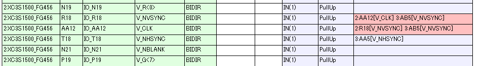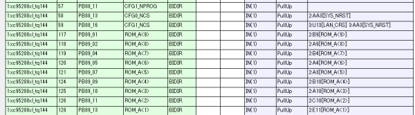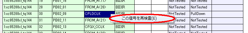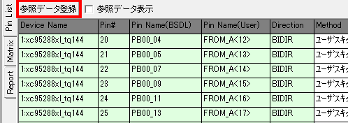例えば、2:A4[ROM_A<6>]となっていた場合、JTAGの2番目のICのA4番端子につながっているということを示しています。ROM_A<6>はピン定義ファイルから読み込んだピン名です。