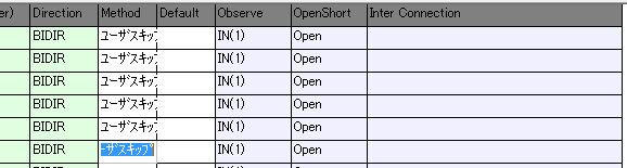 この検査はデフォルトではすべての端子に対して行われてしまうので、使い方を間違えると危険です。検査してはいけない端子を除外するには、Methodと書かれた列のセルに「S」を入力します。※Sと入力すると、自動的にユーザスキップと変わる。
