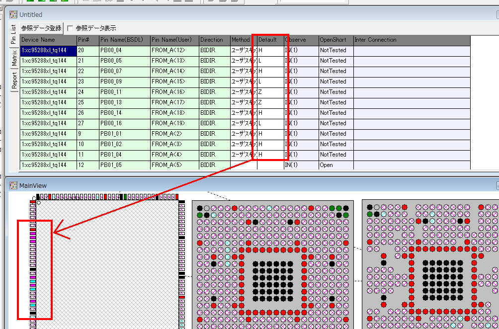 検査をスムーズに行うコツは、ターゲットボード上のFPGAにはあらかじめピンファイルを読み込んでおくことです。そうすることで、異常が見つかったピンの名前がわかるので、異常を探しやすくなります。