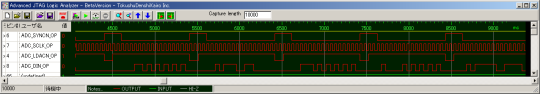 シリアルDACを操作してDCオフセットを与える場合など、動作速度を落としても問題ないアプリケーションでは、クロックを十分に落とすことでバウンダリスキャンで端子の状態が読めるようになります。