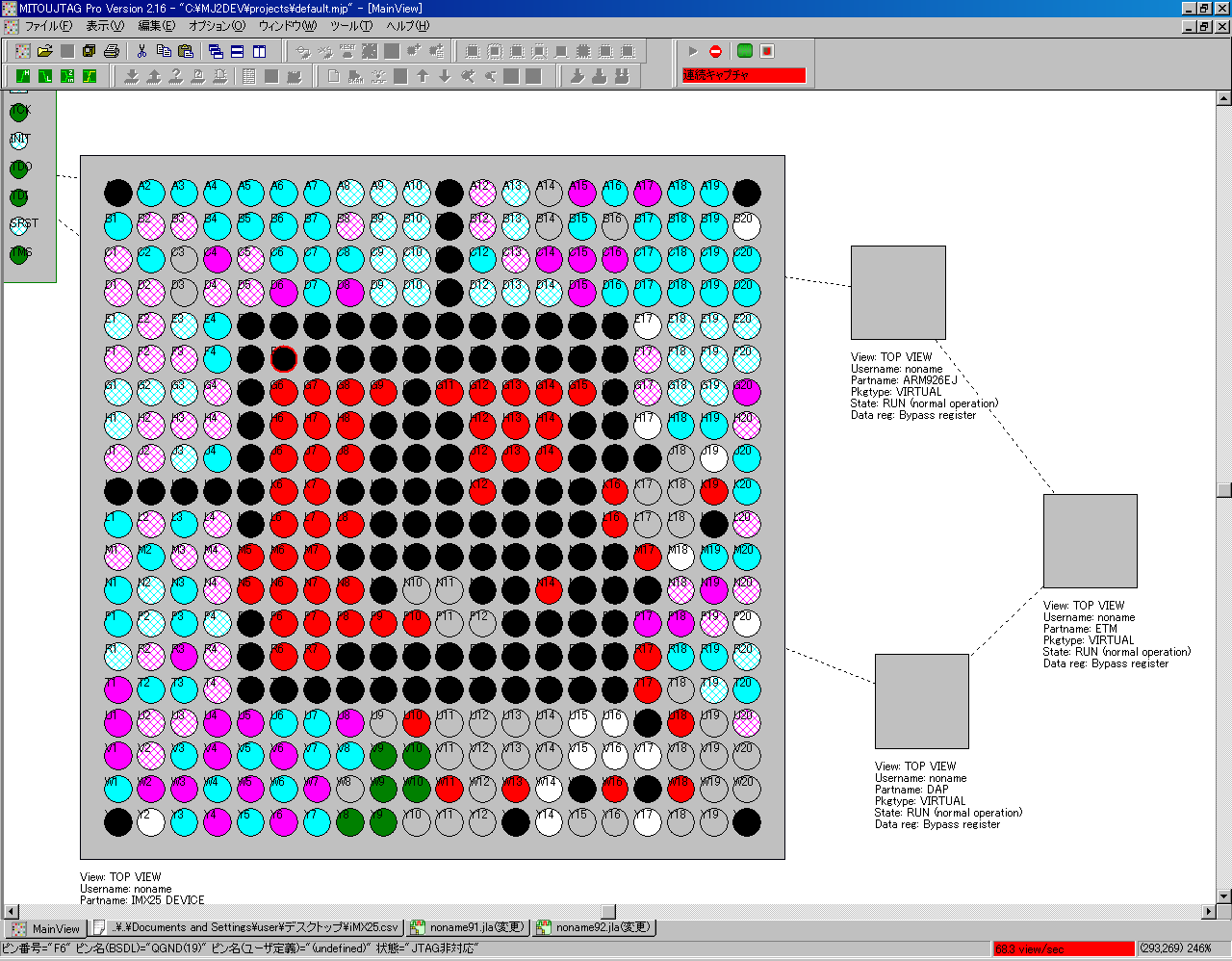 そうしたら、このように最初のモジュールに対してバウンダリスキャンができ、i.MX25のI/O端子を見たり操作したりすることができるようになったというわけです。