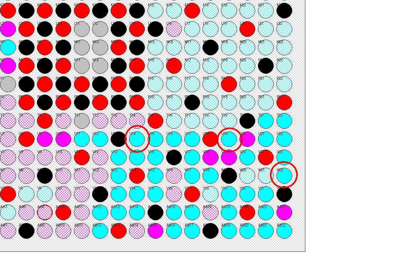 基板のシルクをみると、U14,U19,W22番あたりの端子がLEDにつながっているようなので、ここをMITOUJTAGの画面上でクリックしてやります。