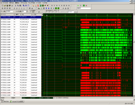 同じタイミングで、こんどはDDR SDRAMの端子の状態を見てみます。FPGAが起動したくらいの時間(17秒目付近)からDDR2 SDRAMの信号が動き出しているのがわかります。