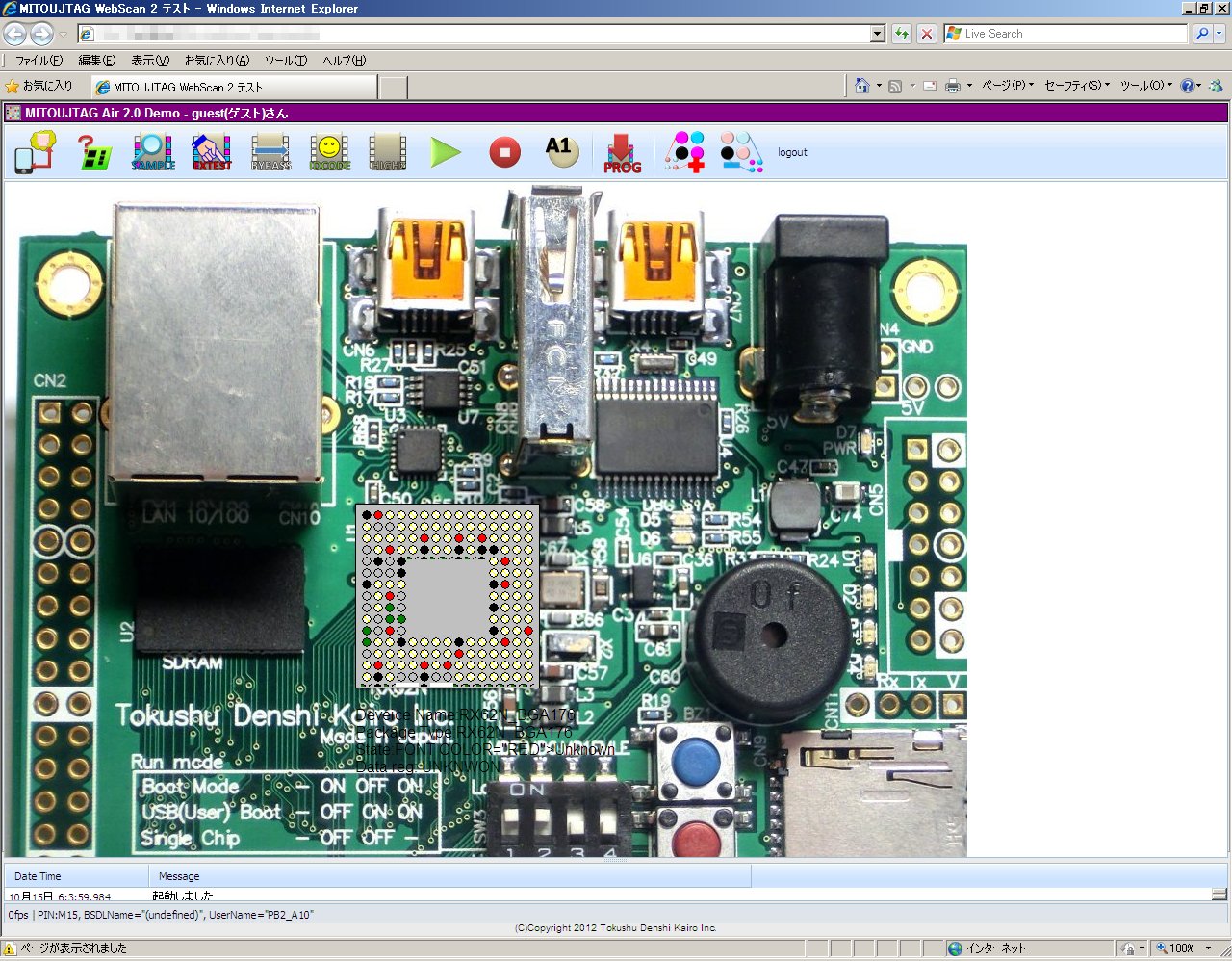 ① 世界中のどこかで公開されているJTAGサーバに接続して、遠隔地にあるICの端子のH/Lの状態を見たり、操作したりすること