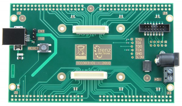 Trenz Electronic TE0303プロトタイピングキャリアボードは、Trenz Electronic TE0300およびTE0630産業用マイクロモジュールへの低コストの接続と拡張を提供します。デモキャリアボードの合計は42の差動信号ペア 100オームの差動インピーダンスでヘッダーコネクタJ1〜J4にルーティングされます。 これらのラインは、差動ペアごとに最大666 Mbit/sの高速信号に使用できます(Xilinx Application Note XAPP485を参照)。 デモキャリアボードの合計は26個のシングルエンドライン ヘッダーコネクタJ1〜J4にルーティングされます。 これらのラインは、低速および中速信号に使用できます。