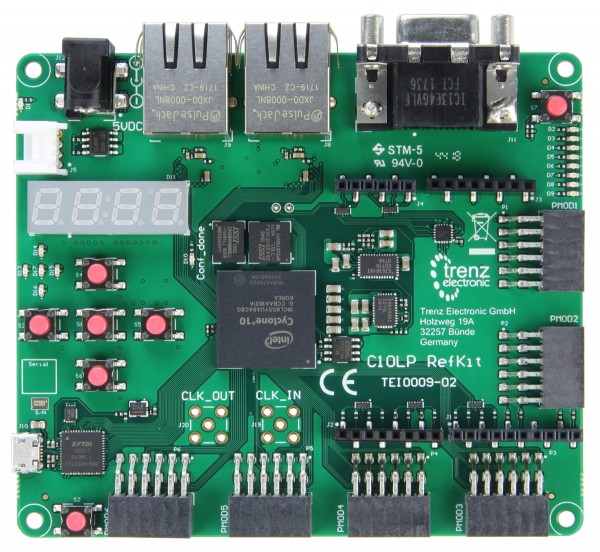 製品を改善しました。すべての変更は、製品変更通知(PCN)で確認できます。Cyclone 10 LPリファレンスキットは、55kLEのIntel Cyclone 10 LPと多くのアプリケーション向けの多種多様なインターフェースを備えた世界初の開発ボードです。このボードは完全に認定されており、最終製品にすぐに使用できます。また、要件に合わせてカスタマイズされたバリエーションで注文することもできます。