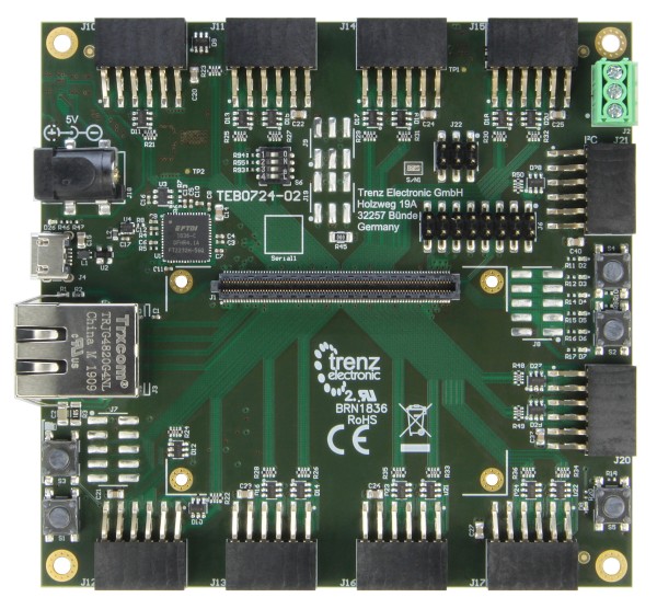 製品を改善しました。すべての変更は、製品変更通知(PCN)で確認できます。TEB0724は、Trenz ElectronicのTE0724および互換モジュール用の開発キャリアボードです。モジュール上のすべての機能に簡単にアクセスできます。