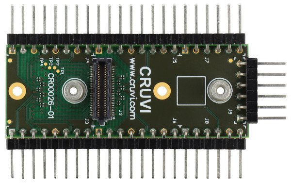 Trenz Electronic CR00026-01-A は、調査中の他の HS CRUVI モジュールのブレークアウト/インターポーザーとして使用される HS CRUVI モジュールです。HS CRUVI コネクタのすべての信号は、ホスト HS CRUVI コネクタにルーティングされ、さらに 2.54 mm ピッチのピン ヘッダー (組み立てられていません) にルーティングされます。詳細については、www.cruvi.com をご覧ください。