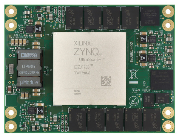 Zynq™ UltraScale+™ ZU17EG-2I を搭載した MPSoC モジュール。 4 GB DDR4 ECC (PS); 4GB DDR4 (PL)