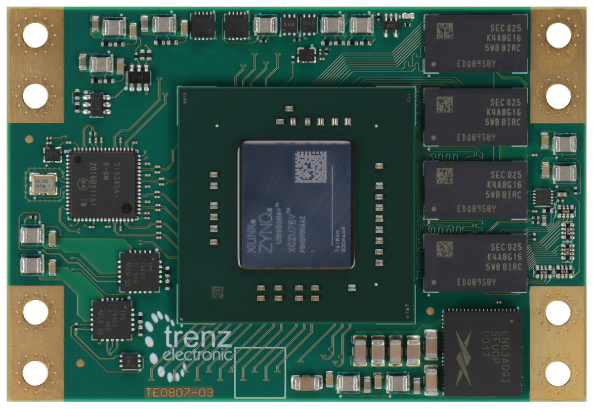 - 1 x TE0807-03-7DI24-A Trenz Electronic MPSoC Module with AMD Zynq™ UltraScale+™ ZU07EV