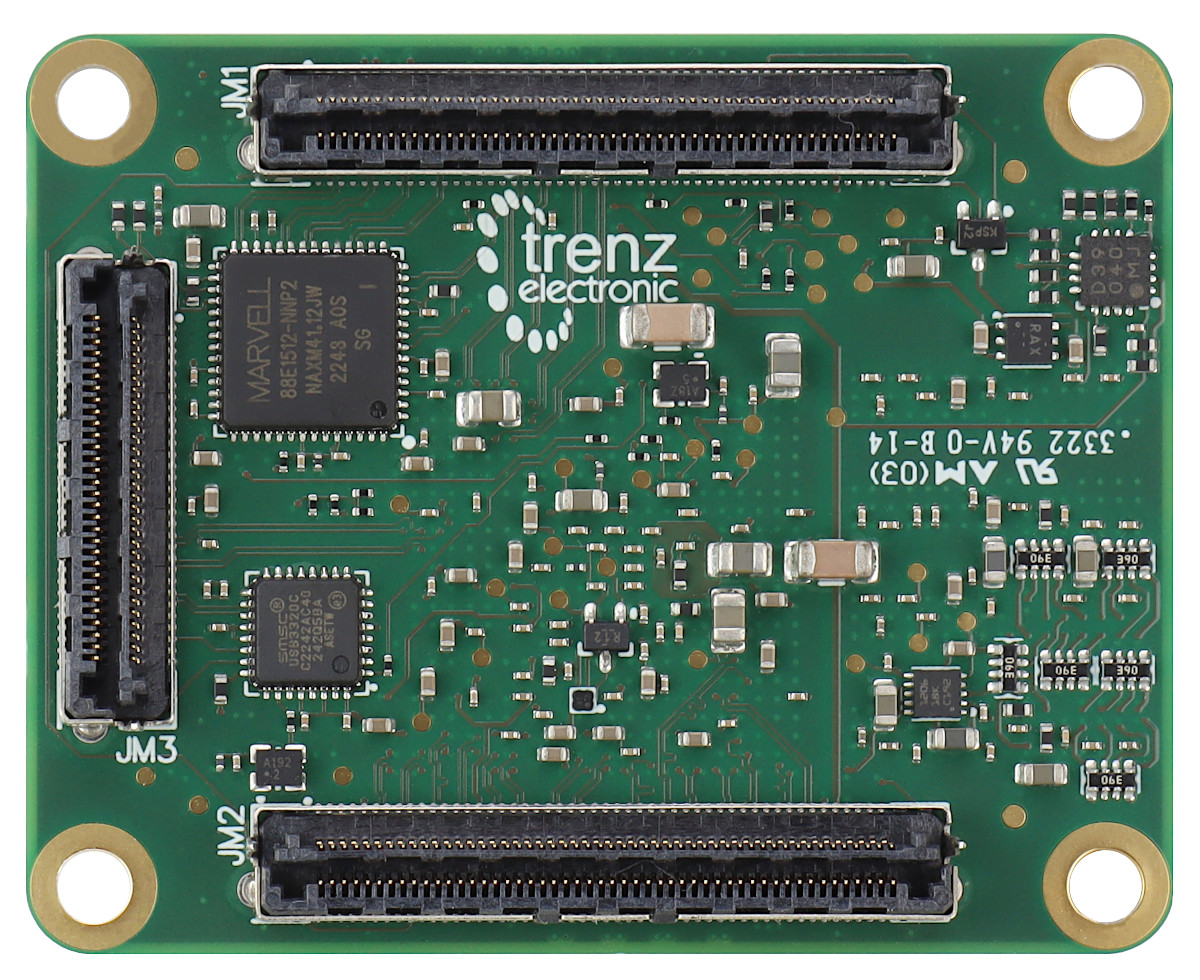 - 10/100/1000 tri-speed Gigabit Ethernet transceiver (PHY), SGMII accessible on a board-to-board connector