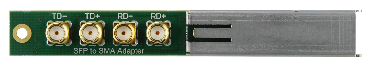The Trenz Electronic TEC0106-02-A is a SFP to SMA adapter. It&lquot;s as narrow as a SFP, so as many adapters as needed can be plugged into a corresponding SFP slot next to each other. High speed signals are routed to four SMA connectors.