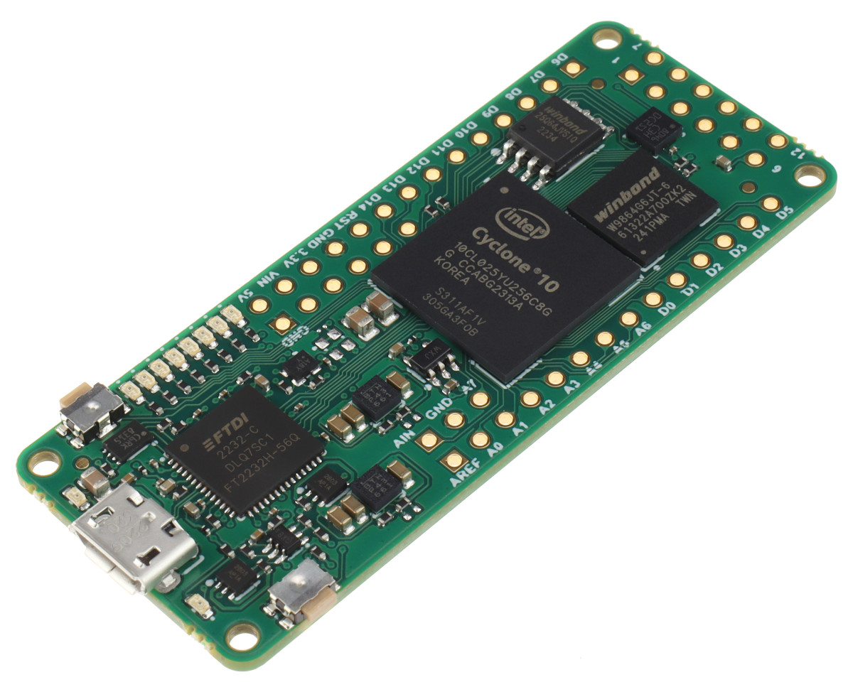 この製品の前身は TEI0003-03-QFCR4Aです。すべての変更は製品変更通知 (PCN)に記載されています。Trenz Electronic TEI0003-03-QFCT4A は、Intel Cyclone 10 LP FPGA、8MByte SDRAM、8MByte フラッシュ、および超低電力高性能 3 軸加速度計を統合した小型で強力な FPG | ||||