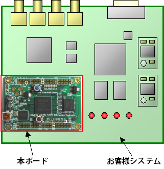 もちろん、ボード上のUSBインタフェースは、お客様アプリケーションの通信用にもご利用いただけます。FPGAのコンフィギュレーションとお客様アプリケーションを切り替えるために、複数のUSBポートを用意する必要もありません。