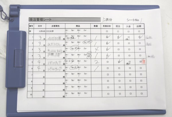 日々、お客様から見積もり依頼や注文があるのですが、電話やメール受けた担当者の頭の中でしか管理されていないと、「あれ、○○さんのSpartan-6、発送したっけ!?」ということになります。