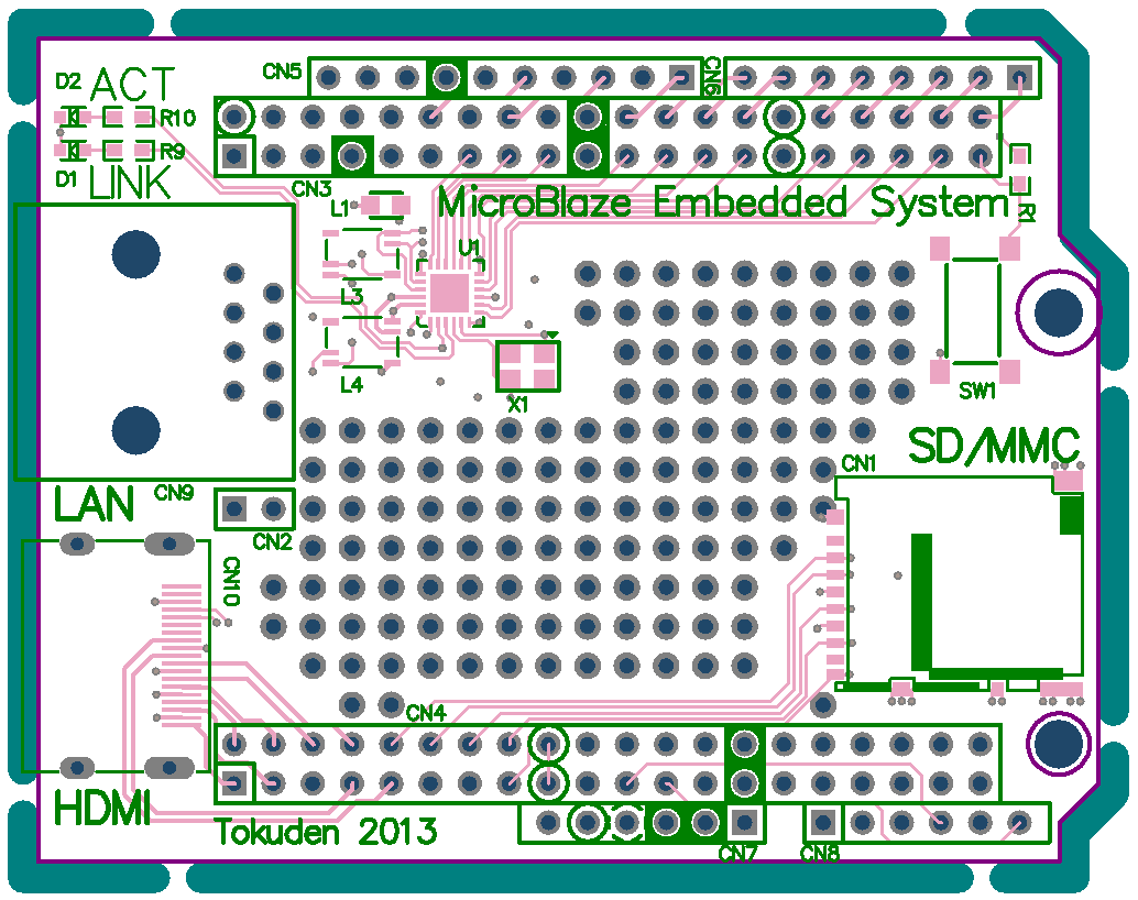 「Spartan-6やArtix-7にMicroBlazeを入れて、SDカードや、LANをつかってみたりする実験がしたいときに、手軽に使えるものがほしいなぁ」という思いから、Artix-7用の拡張ボードを作ろうと思います。