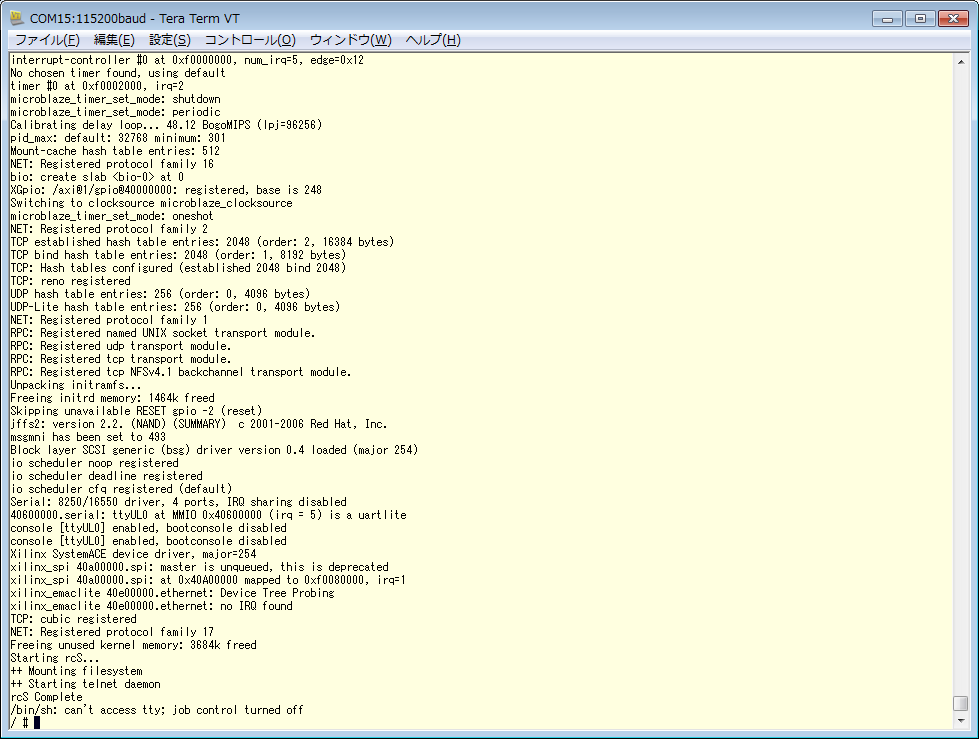 まだネットワークもMMCも使えない素朴なLinuxですが、はっきりと起動しました。