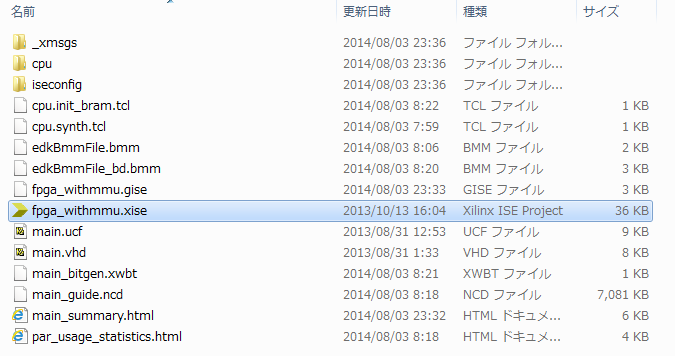 まずは、ISEでこのfpga_withmmu.xiseを開いてください。