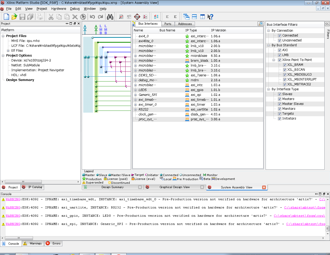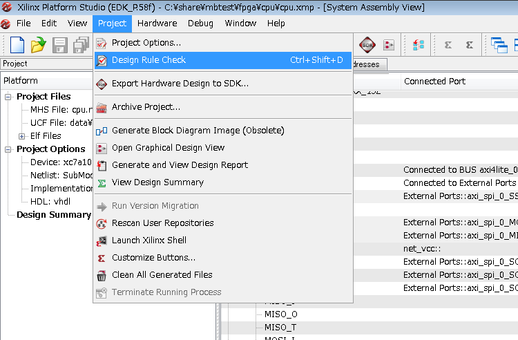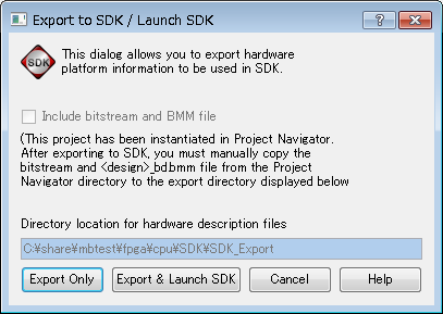 なお、手順38でExport Onlyを押すとここまで一気にはこれません。SDKの中でNew→Other→Hardware Platform Specificationという手順を踏まなければならないので面倒です。Export & Launch SDKを押しておきましょう。