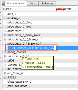 19. まずはメモリコントローラをカスタマイズします。Nameとかかれた欄の枠を引っ張って広く見やすくしたら、DDR3_SDRAM…を選択してF2キーを押せば、名前が変更できます。まずは名前をDDR3_SDRAM_MT41J256M8XX_15に直しましょう。