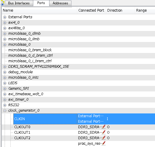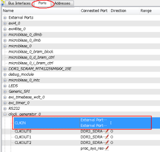 30. Portタブを選択し、Nameを引き伸ばし、clock_generator_0を展開します。