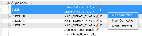 32. 次にMake Externalとやれば、新しい「clock_generator_0_CLKIN_pin」というポートが生成されます。