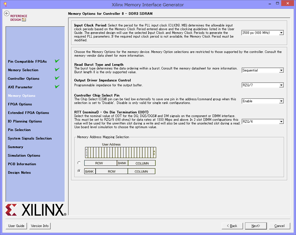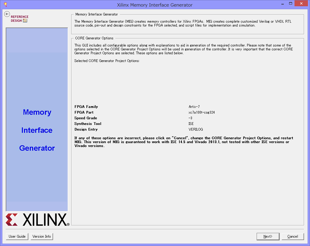 CoreGeneratorでDDR3メモリコアを生成する方法を説明します。