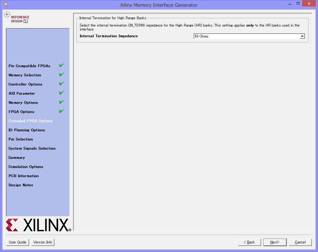 最後に内蔵終端抵抗の値を指定します。50Ωにします。