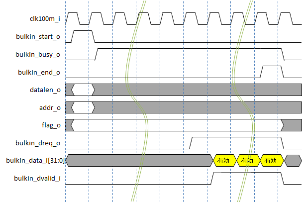 コアがデータを要求している間は、bulkin_dreq_oがアサートされます。そうしたら、ユーザ回路はbulkin_data_i[31:0]にデータを与え、bulkin_dvalid_iをアサートします。