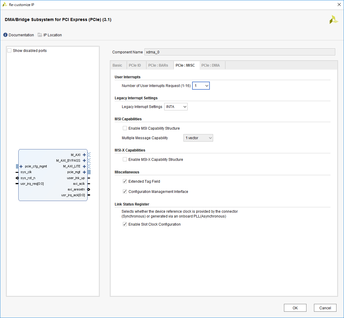 これを有効にするとDMAコントロールレジスタをFPGA内部から操作して、PCI Express経由で勝手にホストPCのメインメモリを操作できると思われるが、そのような使い方は想定していない。