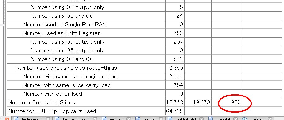 わかてきたことは、Block RAMって意外と遅いってことです。普通にXILINXのCoreGeneratorでBRAMを作ると、400MHzで通りません。XILINXのデータシートではBRAMは400MHzで動くはずなのに、困ってしまいますよね。